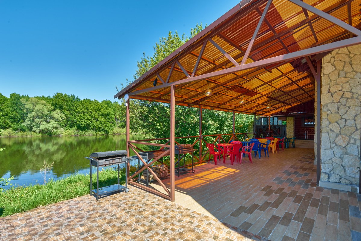 На территории клуба красивая природа, уютные отдельные домики и отличные беседки, речка — можно спокойно отдохнуть на свежем воздухе, пожарить мясо.